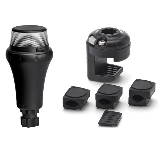 The Bimini RailMount Light Kit will secure the battery powered Illuminate i360 all-round white navigation light at the height of your bimini or canopy. When not needed for the navigation light the Bimini RailMount is ideal for other light weight RAILBLAZA accessories like the Camera Mount Kit and more!
