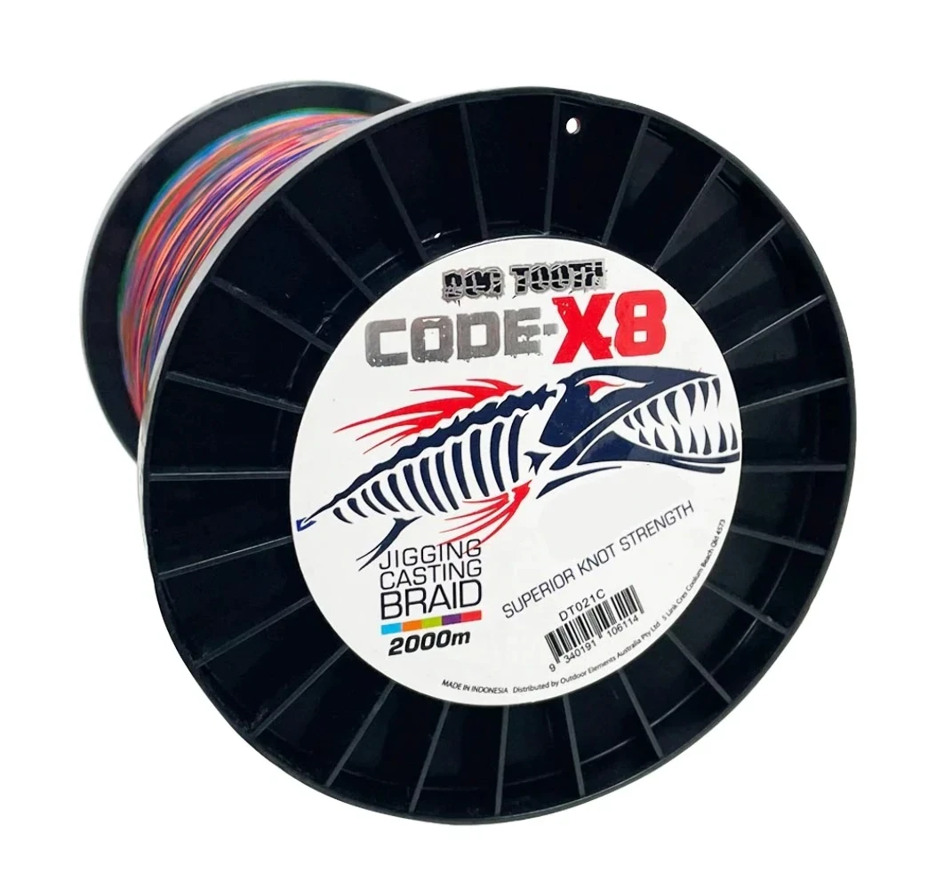 1x full spool 2000m Dog Tooth Code X8 Multi Colour Braid 50lb
