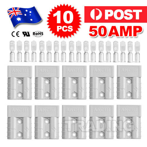 Get your 10 x Anderson Plug Connector Pair 50A Amp 12 - 24V 6AWG Grey Caravan Trailer Solar in 3 Simple Steps