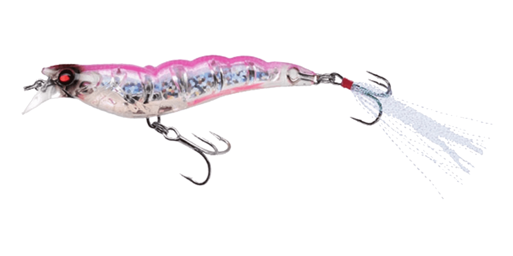 Features a super tight wiggling action and can be fished with a fast or slow darting motion. Cast, retrieve, twitch, and pause after each twitch; the shrimp slowly sinks, inducing strikes on the fall.