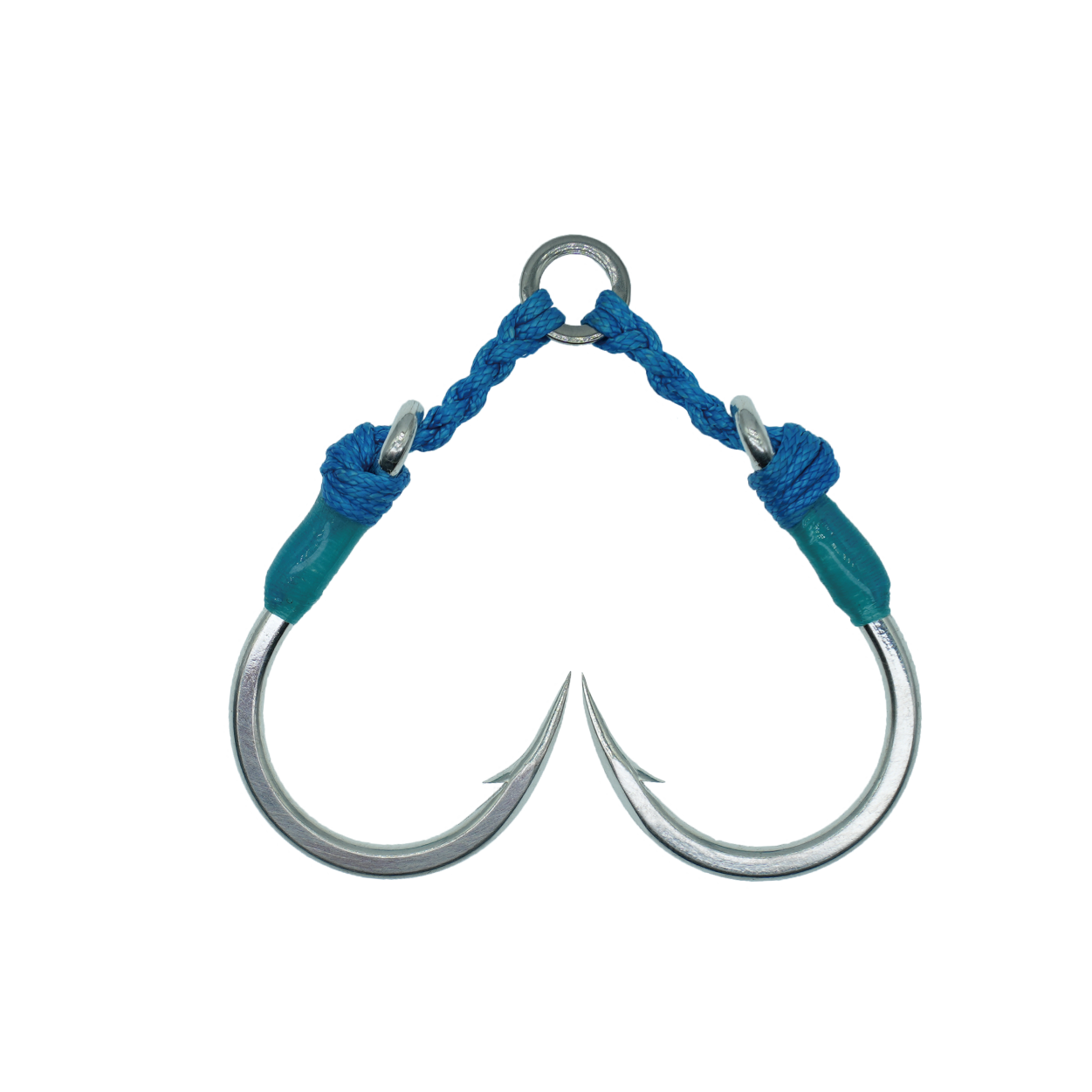 Ideal for rigging stick baits, poppers, and heavy jigging setups, each hook is individually tied to the solid ring, offering two rigging options: outward-facing for maximum hook-up potential or inward-facing to reduce snagging. With hand-ground hook points for superior penetration and a rugged build to withstand the harshest conditions, the Plugging Double HD is a reliable choice for serious anglers chasing powerful saltwater species.
